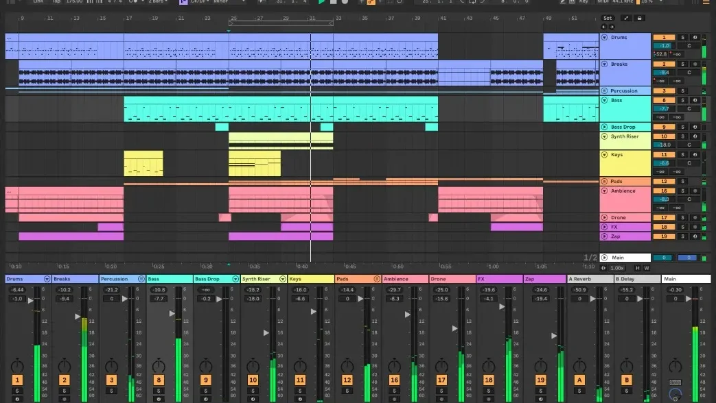 Ableton Liveの最新のバージョンは12。競合類似ソフトと同様に、MIDIシーケンスデータとオーディオデータの両方を扱うことができます。